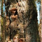 Einige Pilzfruchtkörper Holzzersetzender Pilze - sind solche am Baum zu finden, ist zu untersuchen welches Ausmaß die verursachte Holzzersetzung inzwischen aufweist.